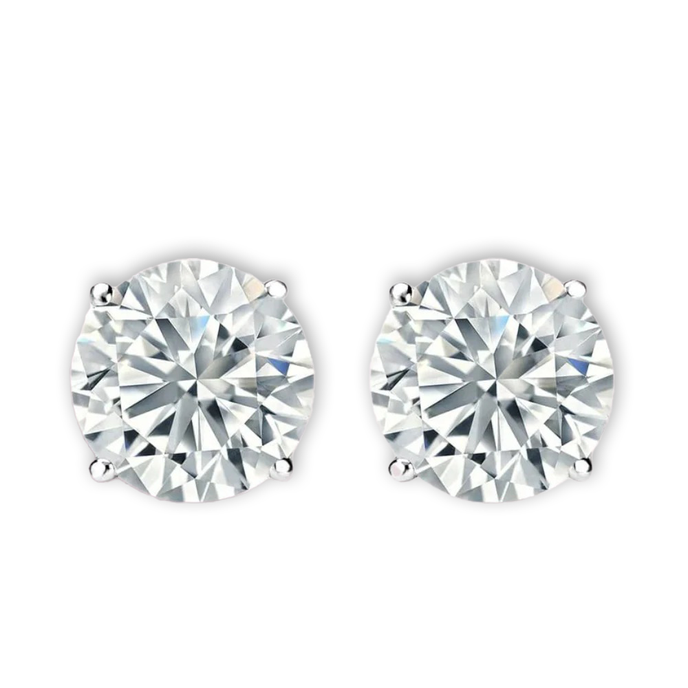 These round brilliant diamond stud earrings feature a classic four-prong setting crafted in 14K gold, delivering enduring brilliance and sophisticated style for daily wear.